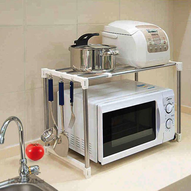 Giới thiệu Giá kệ đặt và bảo quản lò vi sóng, lò nướng, nồi cơm điện và các đồ dùng nhà bếp kèm móc treo tiện ích