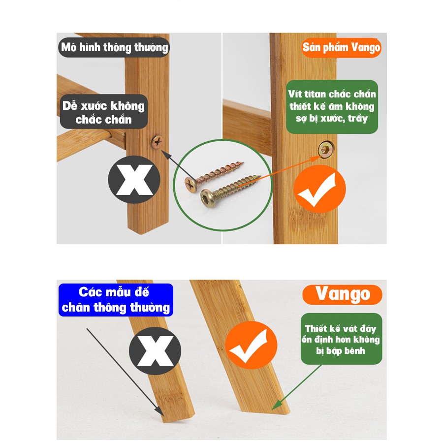 Giới thiệu Giá kệ để chậu hoa, cây cảnh, để đồ đa năng bằng gỗ tre tự nhiên Vango V15 sang trọng, hiện đại, sơn phủ bóng chống nước
