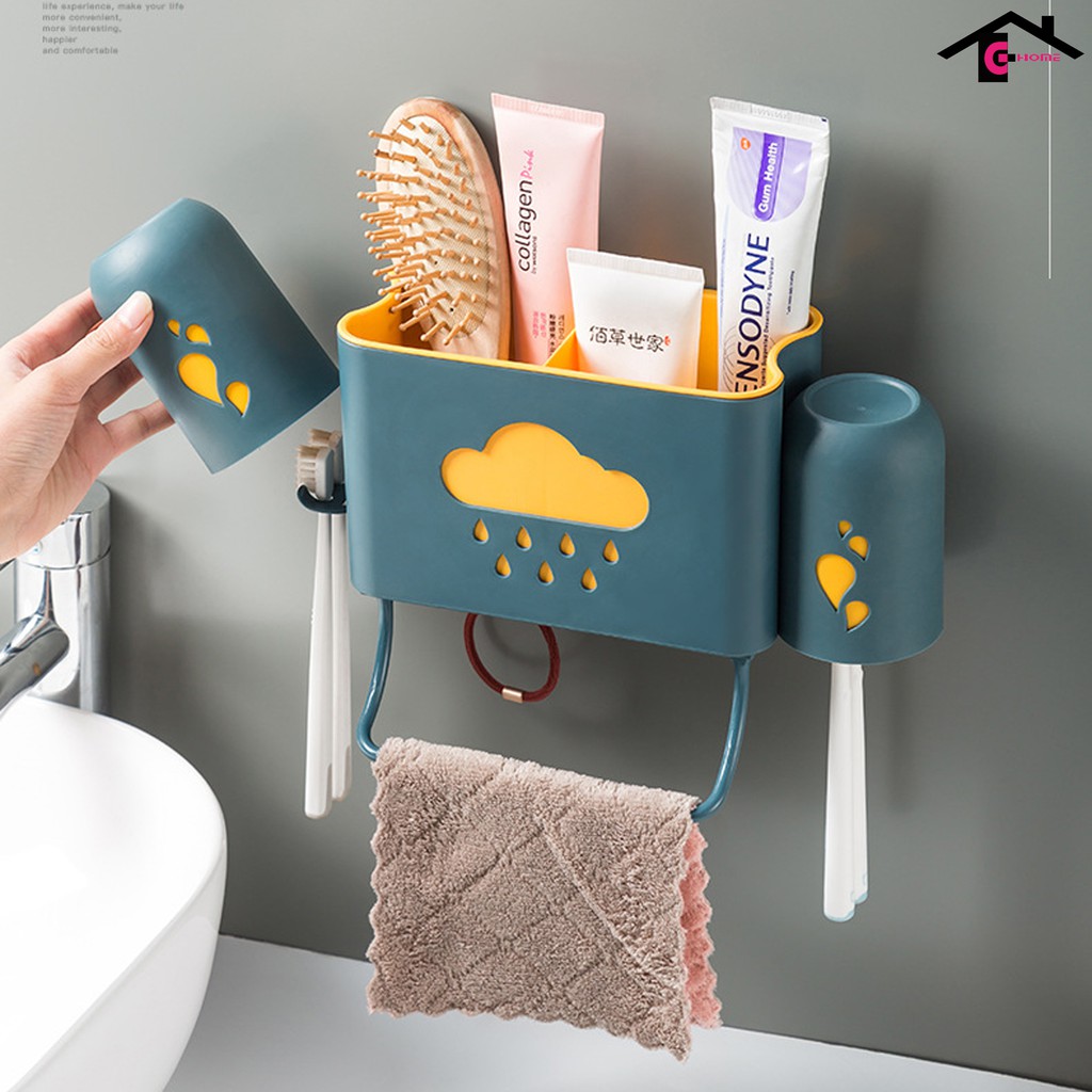 Nhà Cửa & Đời Sống > Đồ dùng phòng tắm > Kệ để đồ phòng tắm || giá kệ để đồ phòng tắm dán tường đa năng đựng bàn chải kem đánh răng + 2 cốc đánh răngCòn hàng