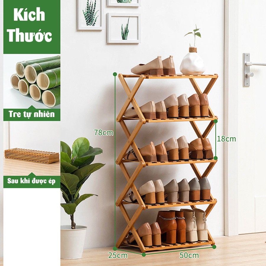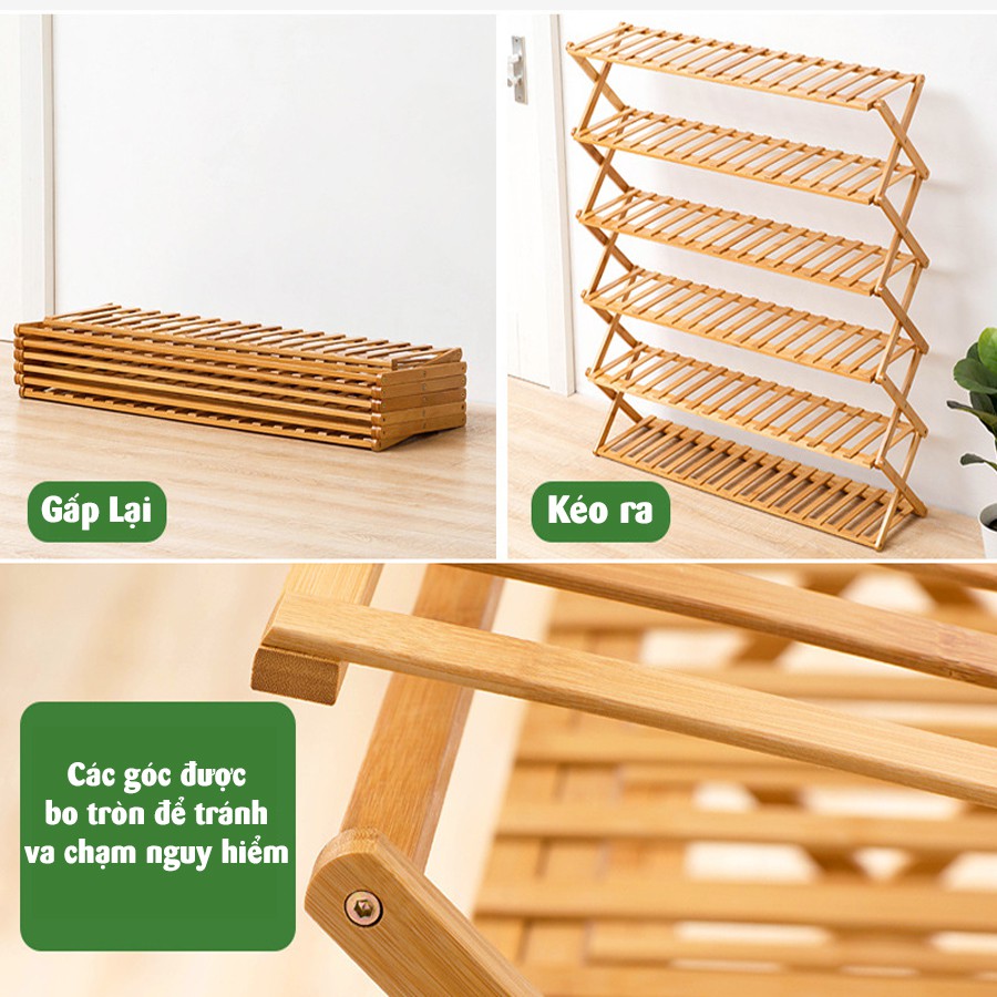Giá kệ để giày dép, để đồ gỗ tre tự nhiên Vango V10 có thể gấp lại tiện lợi, Phong cách nội thất hiện đại, sang trọng