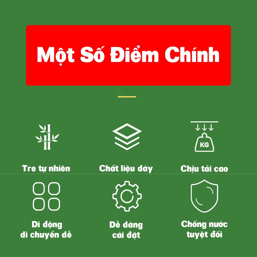 - Chất liệu gỗ tre tự nhiên thân thiện với môi trường, sơn phủ bóng chống nước, chống mối mọt, dễ lau chùi