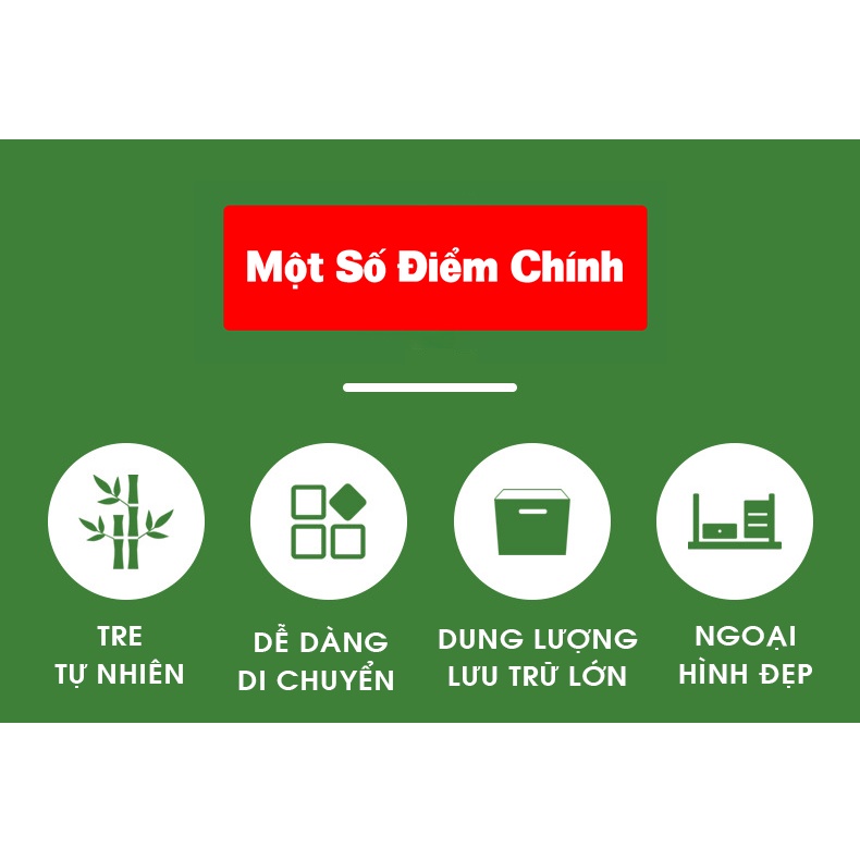 - Chất liệu gỗ tre tự nhiên thân thiện với môi trường, sơn phủ bóng chống nước, chống mối mọt, dễ lau chùi