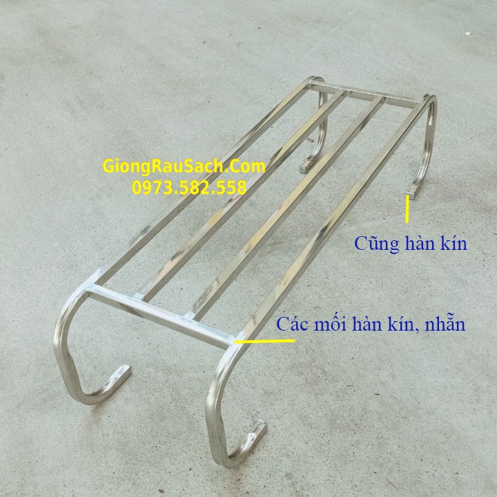 Kệ làm inox giữ được nguyên bản sáng bóng từ nhà sản xuất. Thanh kệ khi được giữ được lớp bóng nguyên bản giúp kệ dễ dàng vệ sinh, lớp inox luôn được bảo vệ dưới tác động môi trường mưa, nắng, bền đẹp hơn. Nếu Inox bạn mua ở chợ nhìn màu xỉn do thanh inox đó được nhũng axit vậy làm cho kệ bị bị hoe ố nhìn rất cũ
