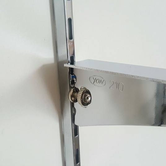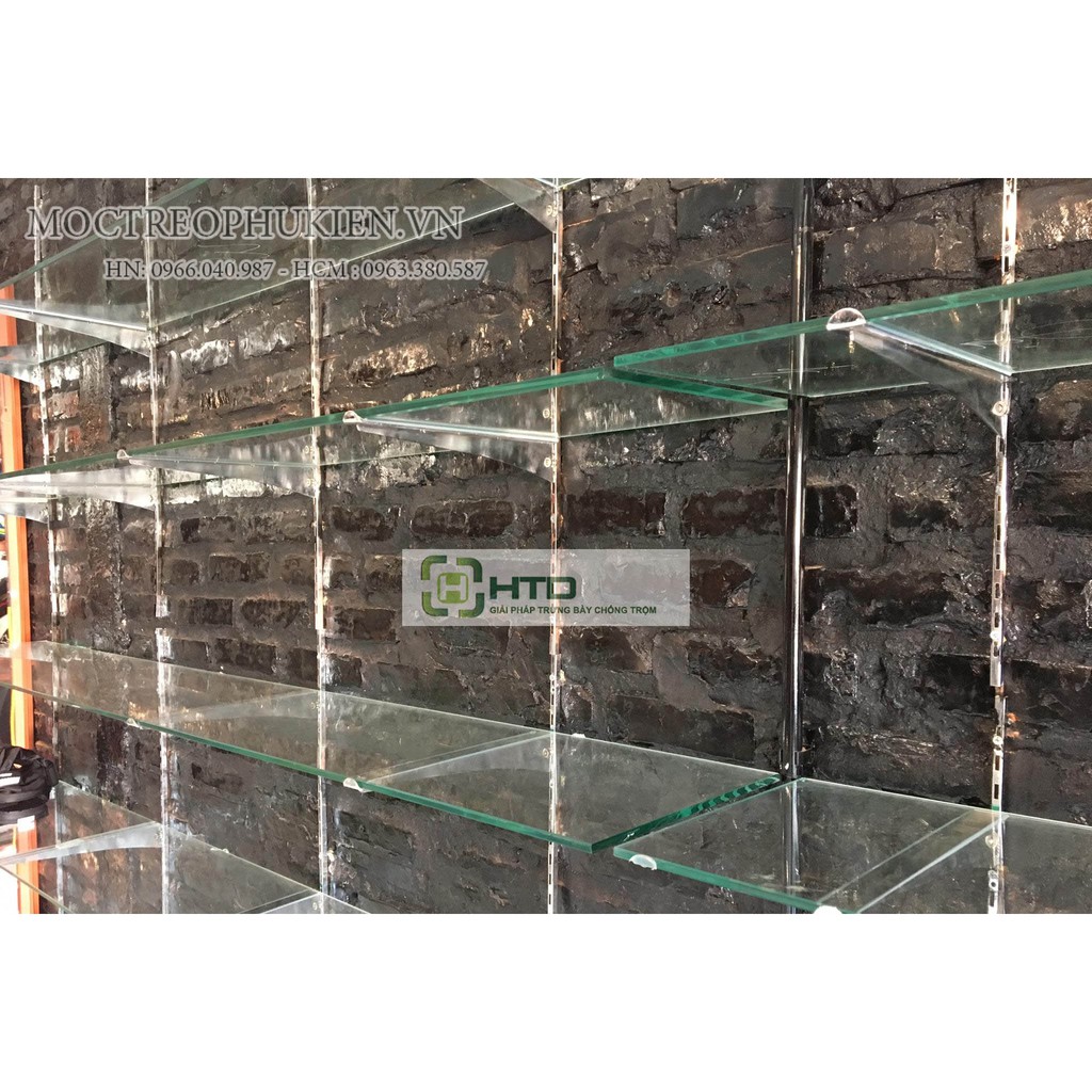 - tay đỡ đợt kính được cài vào thanh ray được úng dụng rộng rãi trong các cửa hàng, hệ thống siêu thị để trưng bày, các sản phẩm cần bán.