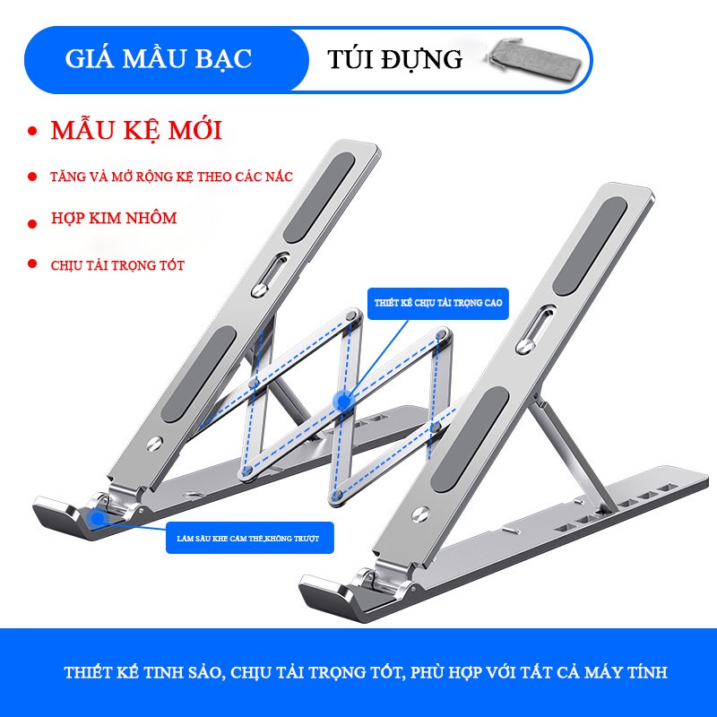 Kệ Laptop gấp gọn tặng túi đựng mẫu nhôm cao cấp chịu lực có thể dùng cho tất cả mẫu máy hiện nay
