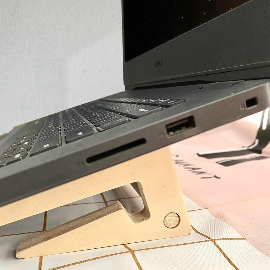 - Giá đỡ laptop gỗ tạo khoảng trống giữa đế laptop và mặt bàn để laptop tản nhiệt một cách tự nhiên.