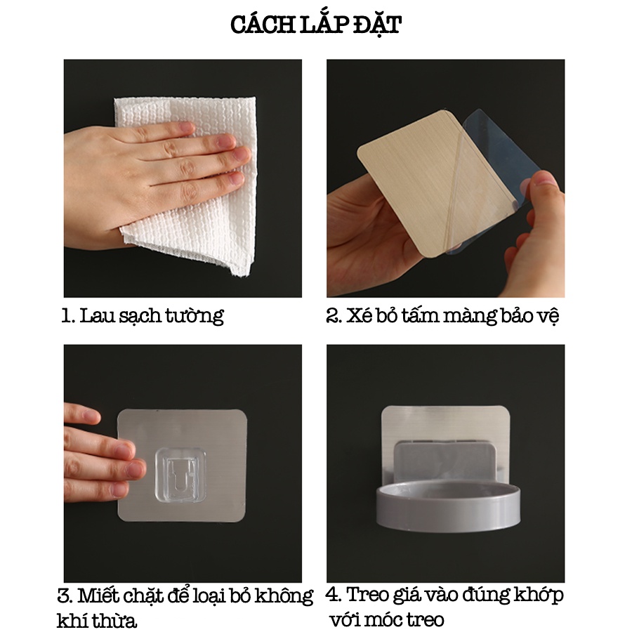 - Sử dụng miếng dán chịu lực, không cần khoan, đục tường