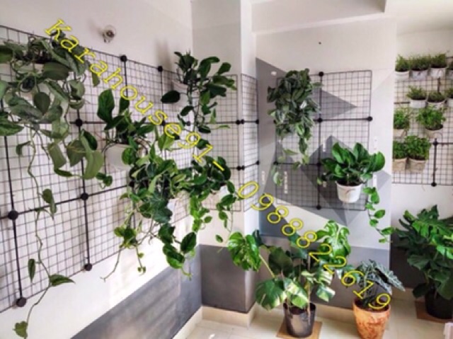 -Một cách sáng tạo khác là dùng khung lưới để treo đồ nhà bếp hoặc treo chậu cây cảnh nhỏ, tạo nên một mảng tường xanh cho không gian sống của bạn.