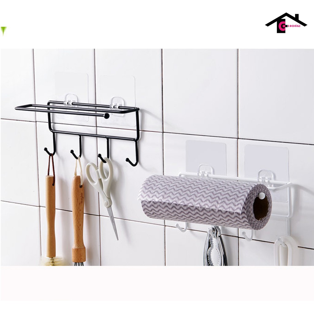 - Kệ nhà tắm, nhà bếp treo cuộn khăn lau với 4 thanh móc chắc chắn, xoay giúp treo đồ tiện lợi, phù hợp mọi không gian sử dụng.