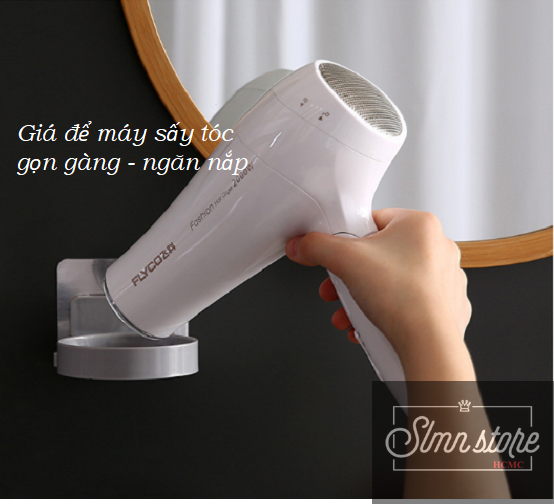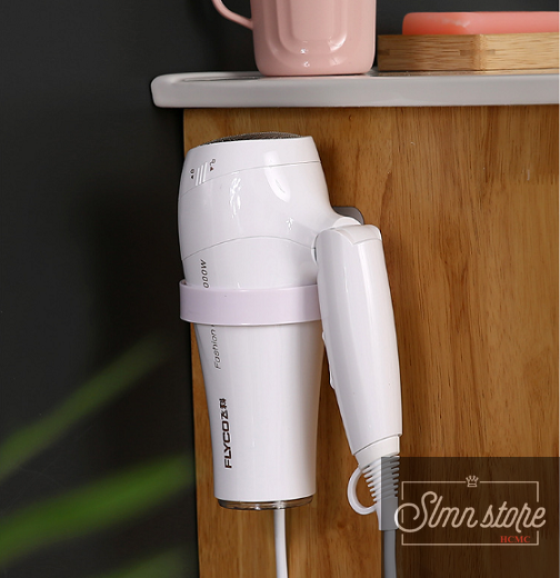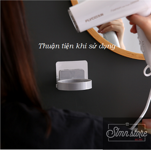 Giá kệ treo máy sấy tóc dán tường siêu dính trên gạch men, không khoang tường. Slmn_TreoMaySay