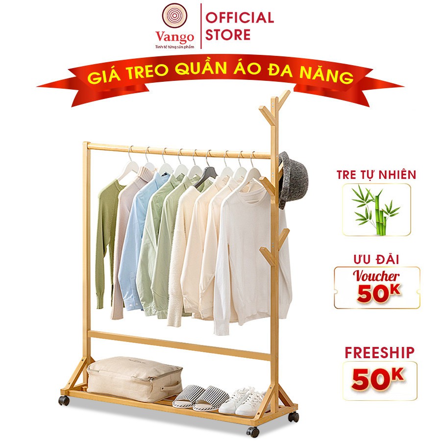 Nhà cửa & Đời sống > Dụng cụ chăm sóc nhà cửa > Dây phơi & giá phơi quần áo || Giá kệ treo quần áo đa năng Vango V4 gỗ tre tự nhiên thân thiện môi trường, Có chỗ để giày tiện lợi, thiết kế sang trọngCòn hàng