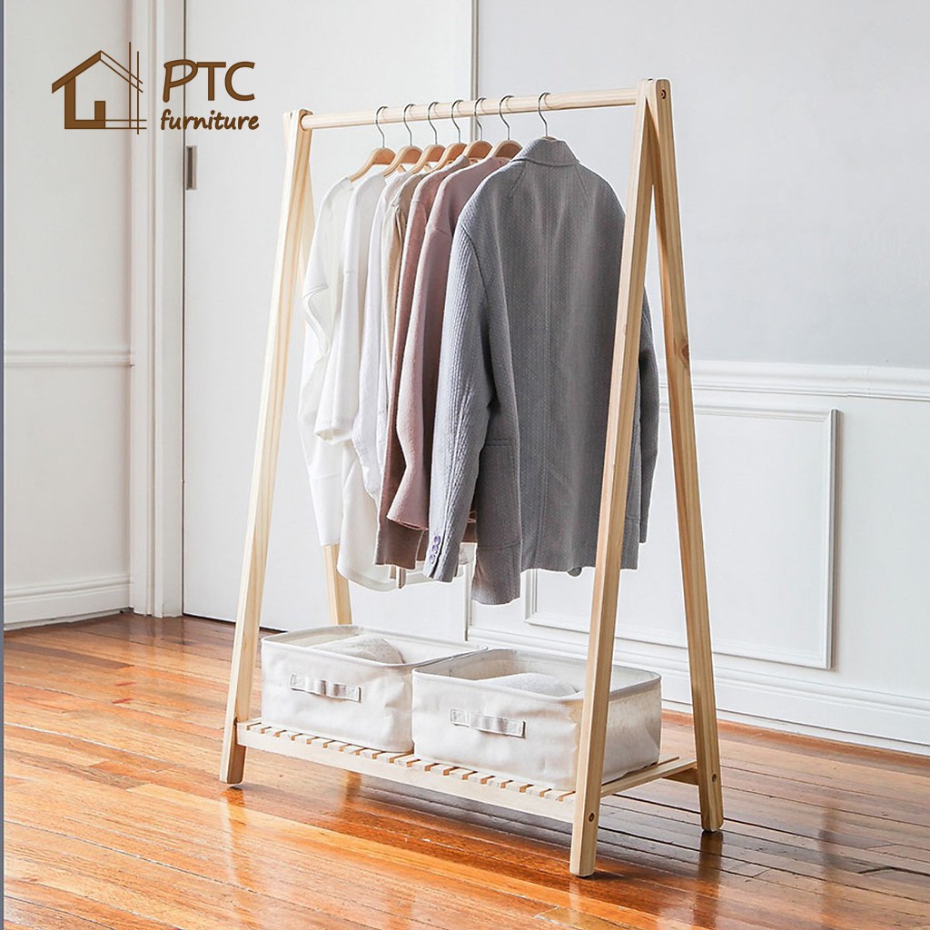 Giá kệ treo quần áo [ FREE SHIP ] 1 tầng gỗ thông nhập khẩu Newzealand
