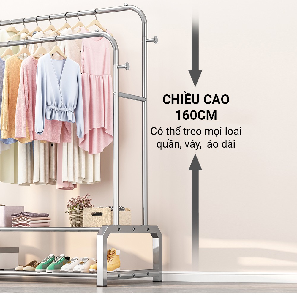 - Kiểu Dáng: Giá treo quần áo đôi - Gấp đôi diện tích treo đồ