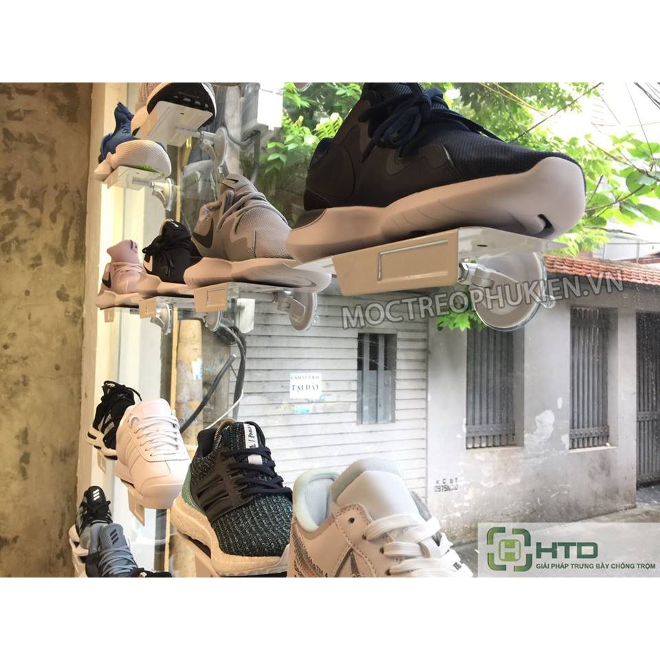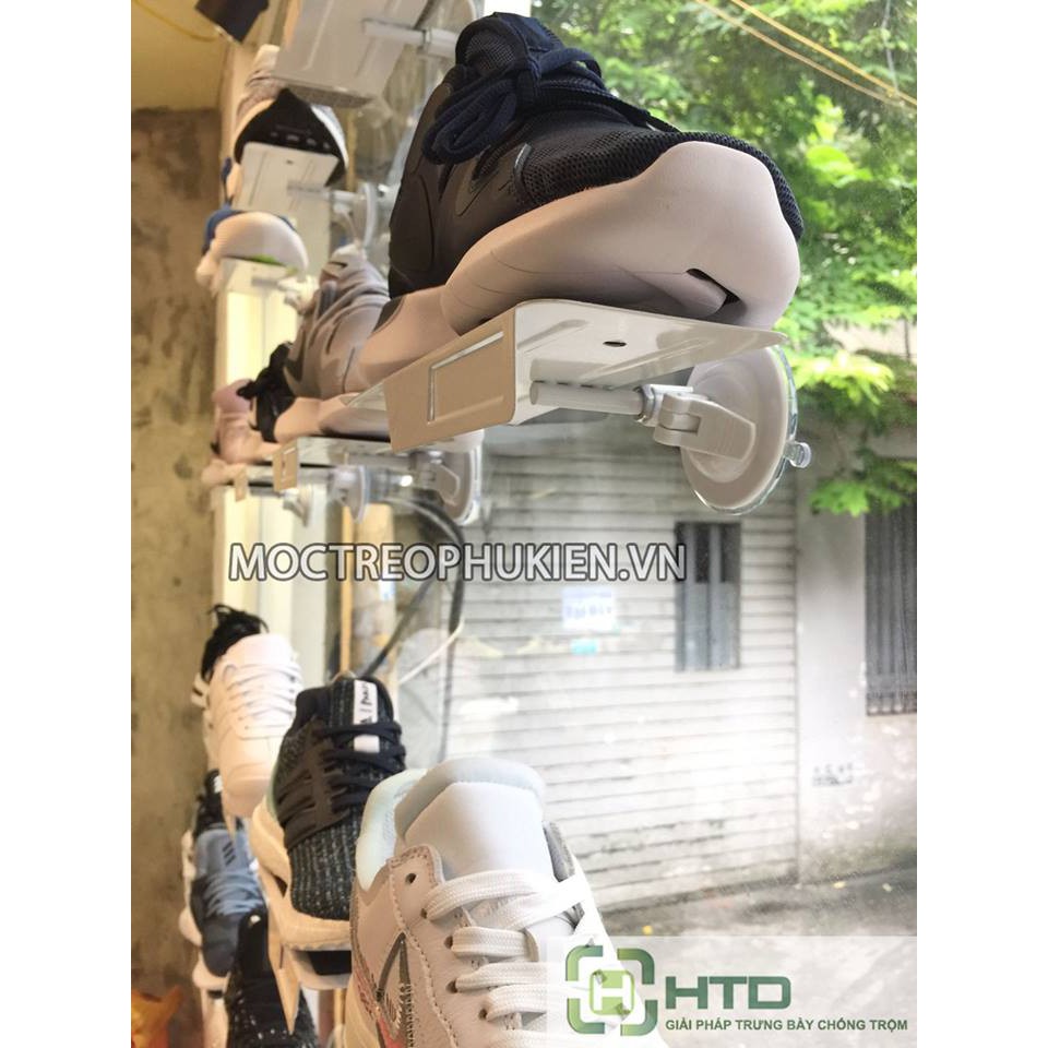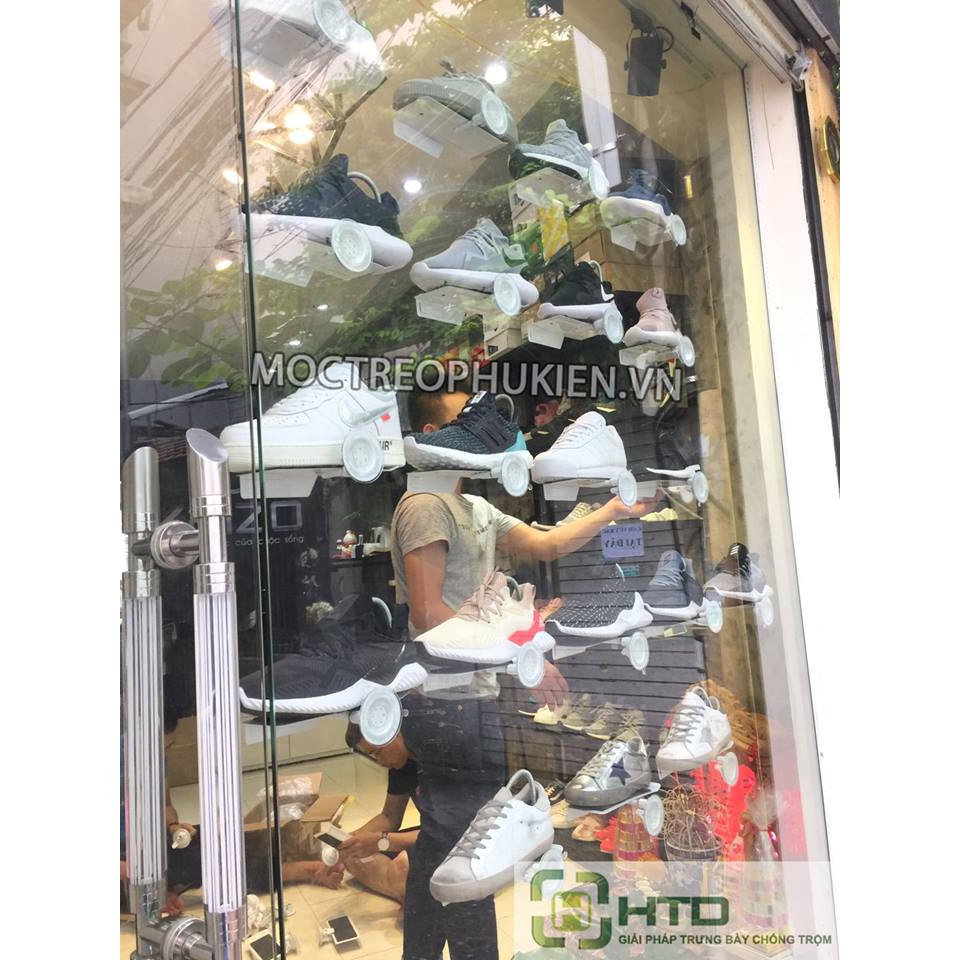 GIÁ KỆ TRƯNG BÀY GIÀY DẠNG HÍT CHÂN KHÔNG LÊN MẶT KÍNH