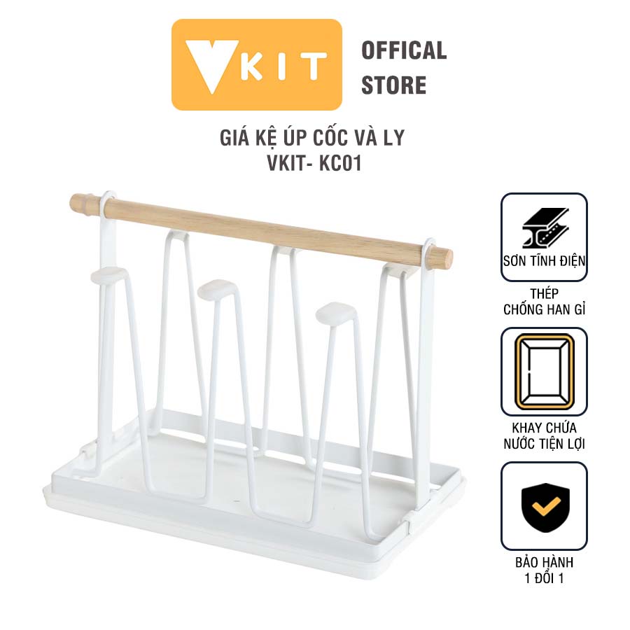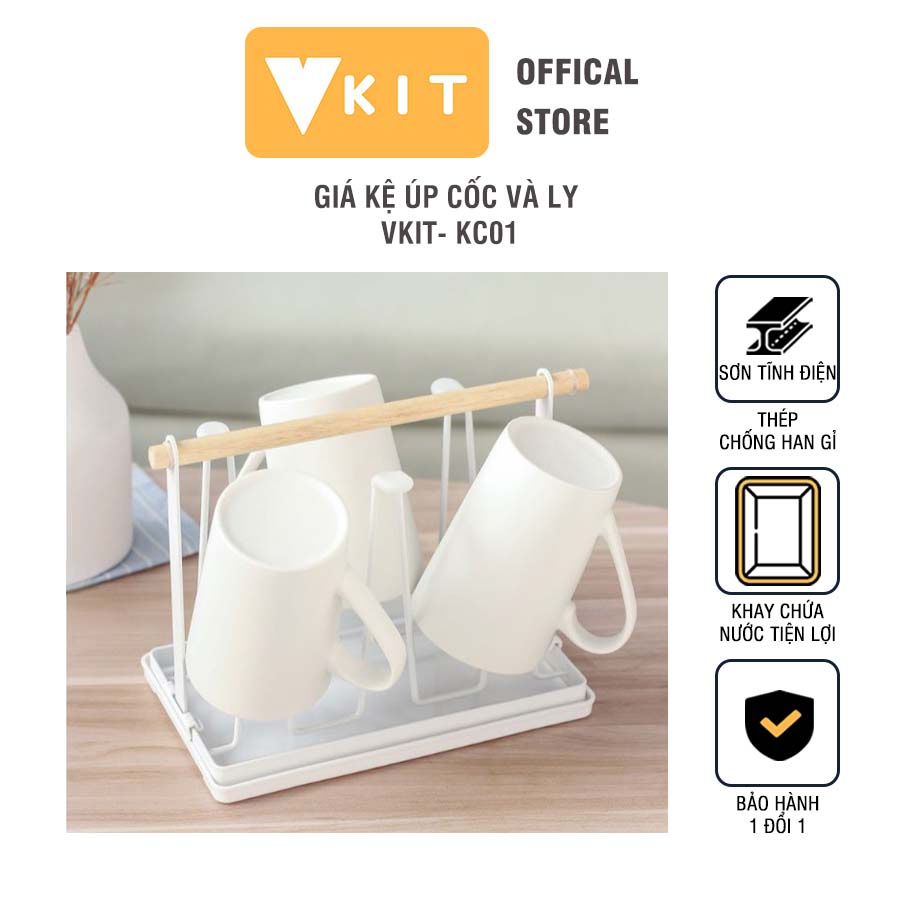 Giá kệ úp cốc và ly cao cấp kèm khay hứng nước bằng thép sơn tĩnh điện VKIT KC01
