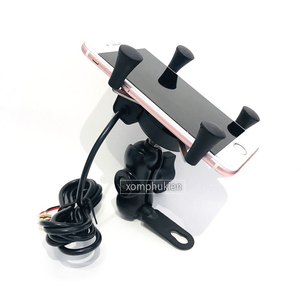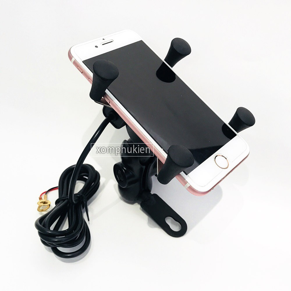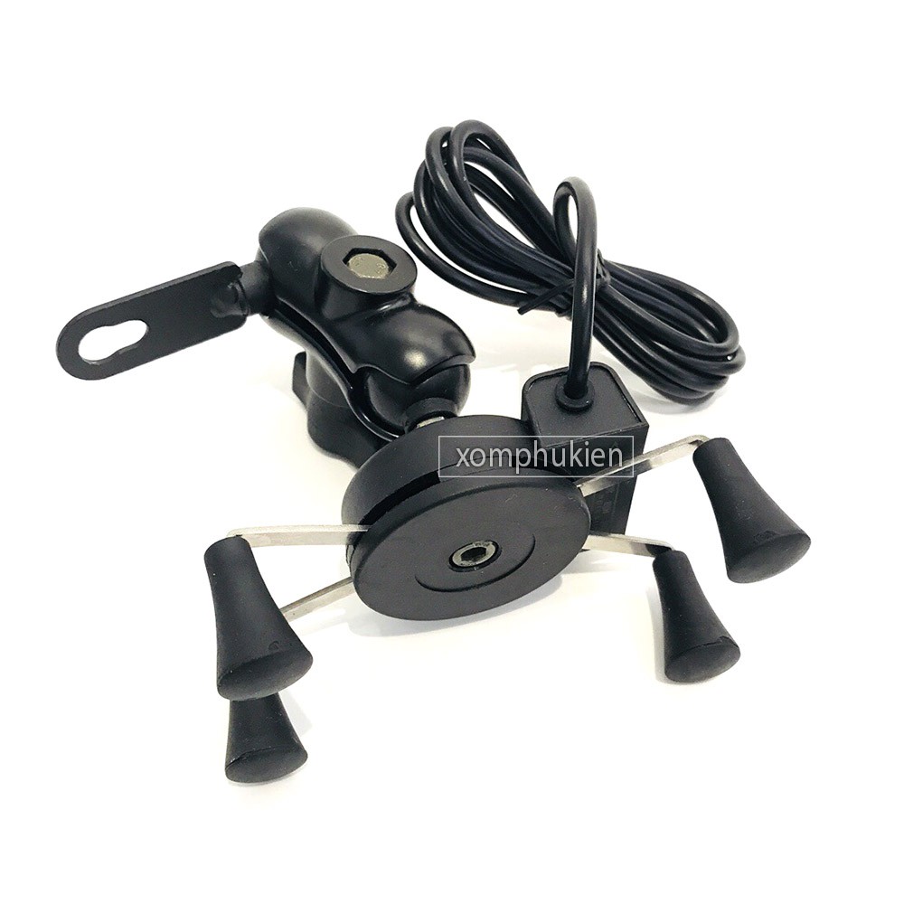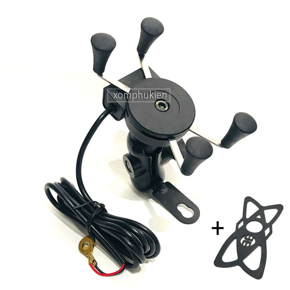Giá Kẹp Điện Thoại 4 Chân Có Cổng Sạc Cho Xe Máy