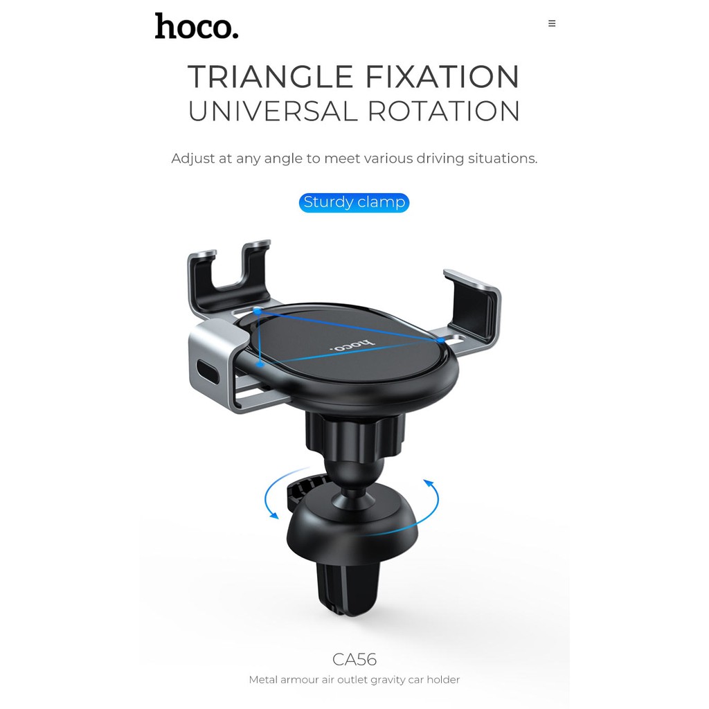 Giới thiệu Giá kẹp điện thoại trên ô tô CHÍNH HÃNG HOCO CA56 gắn cửa gió điều hòa trong xe, tay kẹp 3 càng chắc chắn, xoay 360 độ