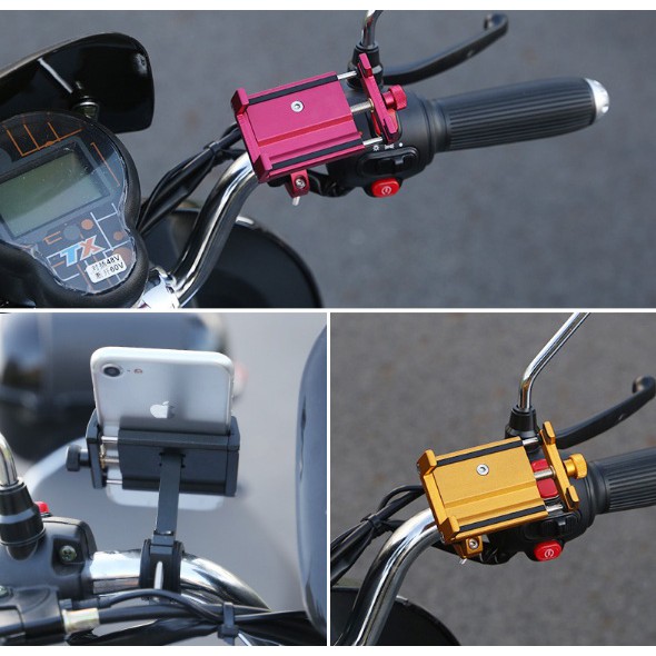 Giá kẹp điện thoại xe máy, xe đạp nhôm CNC