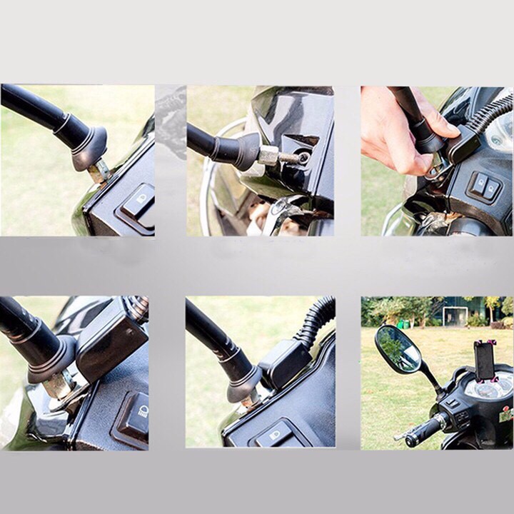 Giá Đỡ Điện Thoại Gắn Trên Xe Máy phiên bản mới, có khả năng giữ điện thoại chắc hơn, ít bị run hơn, độ co giản đàn hồi tốt hơn loại giá đỡ điện thoại trước, cho phép xoay 360 độ, thiết kế phù hợp với hầu hết các loại xe máy găn vào chân gương kính chiếu hậu, giúp các anh em chạy Grab hay shipper thuận tiện khi di chuyển và dễ theo dõi bản đồ, xem thông tin nhanh chóng ...Giá Đỡ Điện Thoại Gắn Trên Xe Máyđược thiết kế nhỏ gọn và rất chắc chắn với khung giá đỡ làm từ nhựa ABS chất lượng cao.