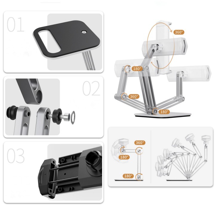 ✔ Kẹp của thể mở rộng đến 23cm phù hợp hầu hết các thiết bị hiện nay. Kẹp có trang bị ball phía sau giúp có thể xoay linh hoạt 360 độ.