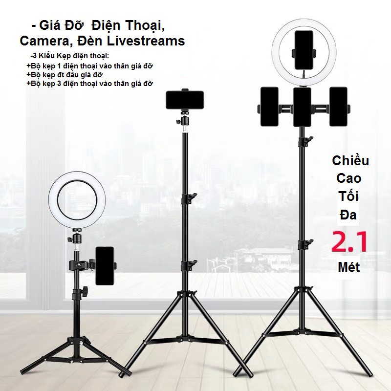 Sản phẩm này gồm các sản phẩm khác nhau:+ Chân Đèn có chiều cao từ 68cm - 210cm, được làm từ kim loại chắc chắn, giúp đỡ điện thoại, đèn livestreams