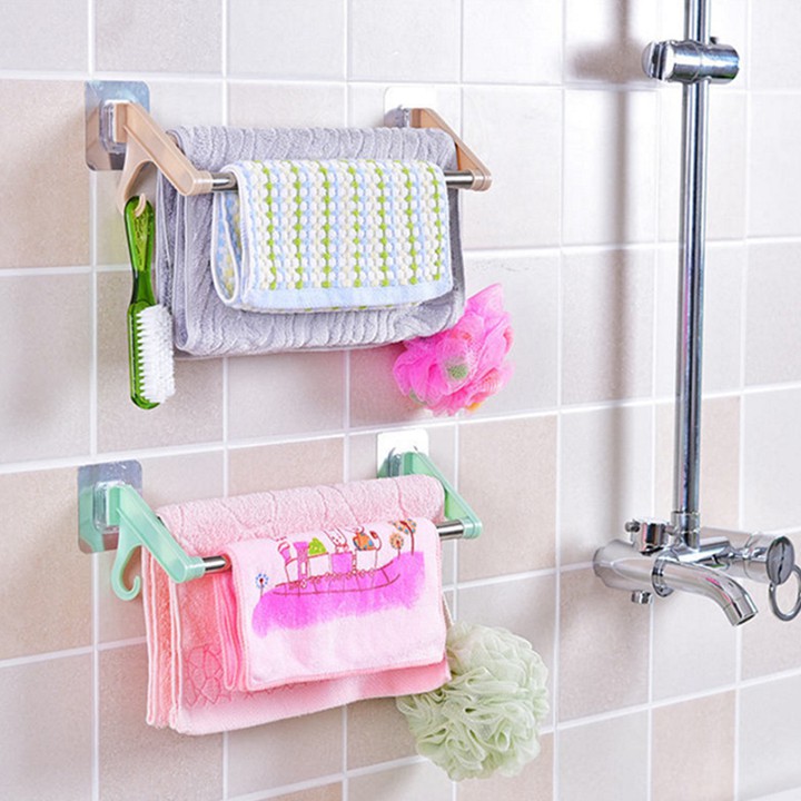 Giới thiệu Giá kép treo khăn 2 thanh tầng dán tường nhà tắm chịu lực cao cấp
