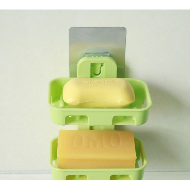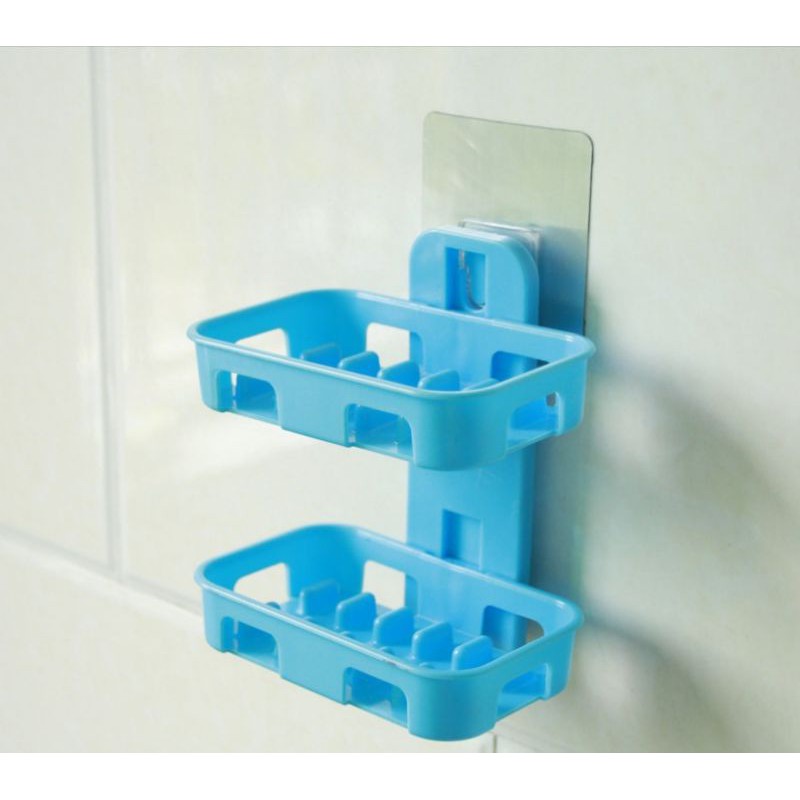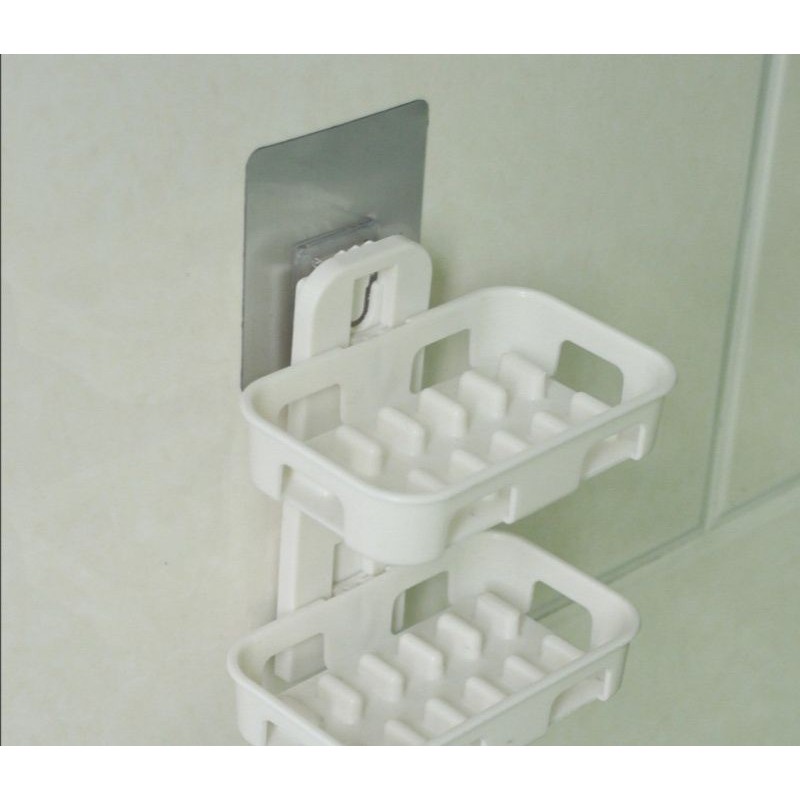 Giá khay để xà phòng tắm tiện dụng, khay 2 tầng kèm miếng dán