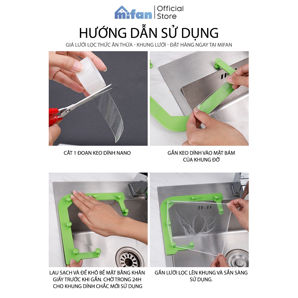 Giới thiệu Giá Lưới Lọc Thức Ăn Thừa - Túi Lọc Rác Bồn Rửa Chén Bát - Khung nhựa ABS chất lượng cao - MIFAN