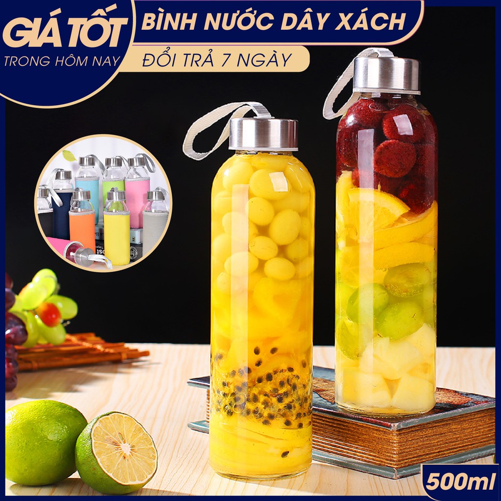 Giới thiệu [GIÁ LUÔN LUÔN RẺ] Bình đựng nước thủy tinh dây xách 500ml