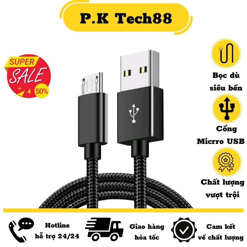 [Giảm Giá] Dây sạc samsung, oppo, xiaomi...,1m Cáp sạc cổng Micro USB thiết kế dây bện dù cho điện thoại androi