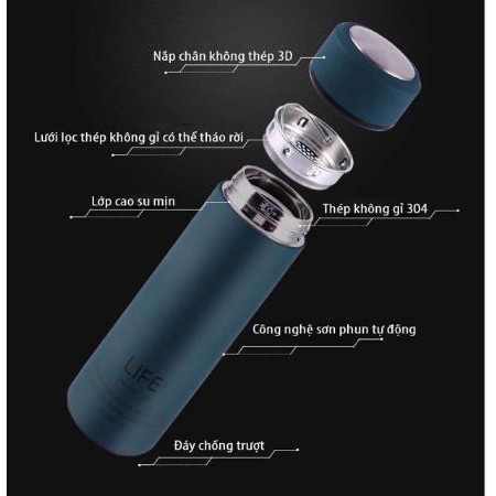 - Bên trong Bình giữ nhiệt LIFE được làm hoàn toàn từ chất liệu inox. được thiết kế với kiểu dáng đẹp, gọn gàng đồng thời giữ nóng và giữ lạnh giúp bạn và người thân thuận tiện trong mọi trường hợp.