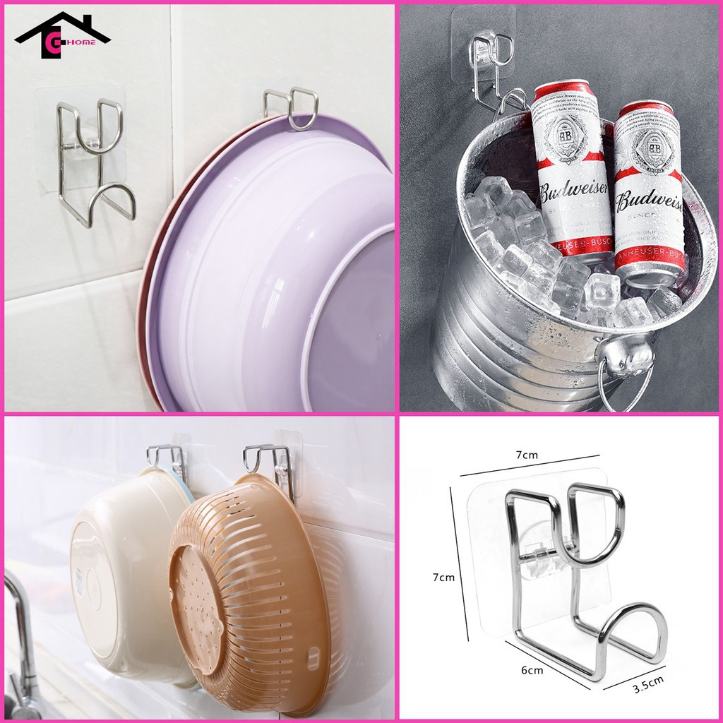 THÔNG TIN SẢN PHẨM- Tên sản phẩm: Giá Móc inox dán tường siêu dính treo thau chậu, khăn, quần ao nhà bếp, nhà tắm