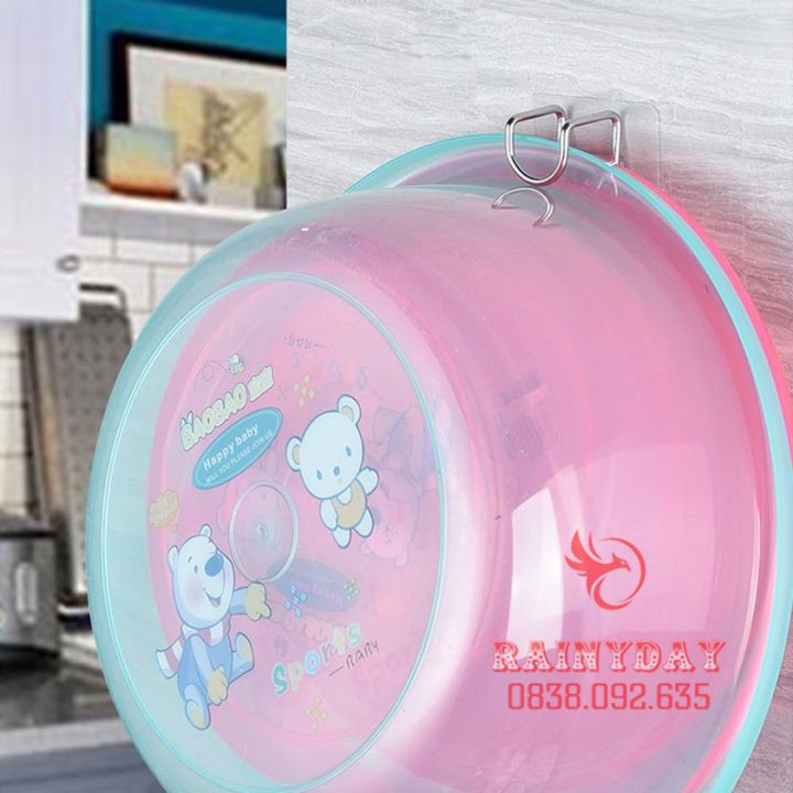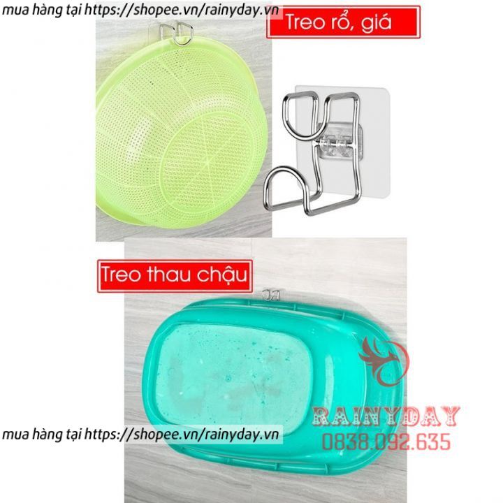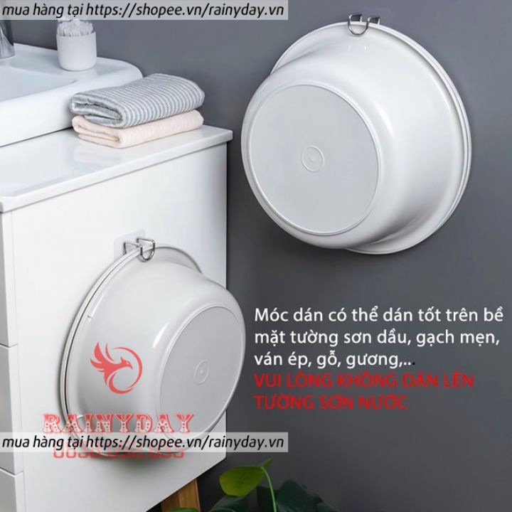 Giá móc inox treo thau chậu khăn đồ dùng nhà tắm nhà bếp dán gắn tường đa năng siêu dính chắc