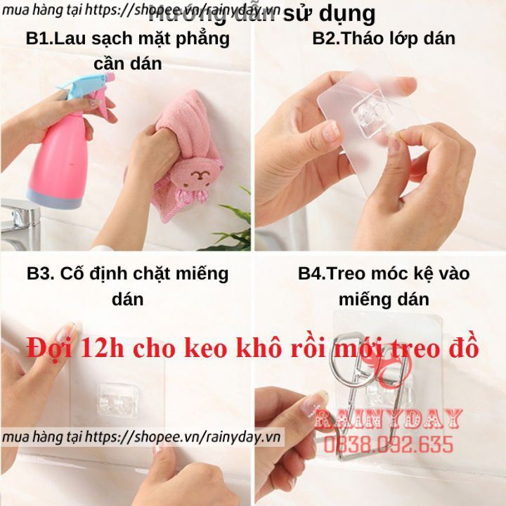 - Móc dán tường tiện dụng bền, chịu nước, không bong tróc.