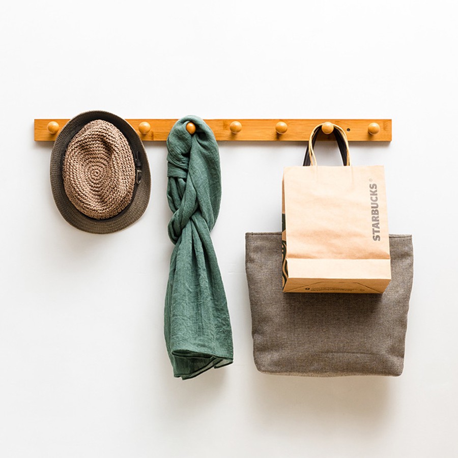 Giá móc treo quần áo gắn tường gỗ tre tự nhiên cao cấp VANGO V20 Sơn phủ bóng chống nước, chống mối mọt cực tốt