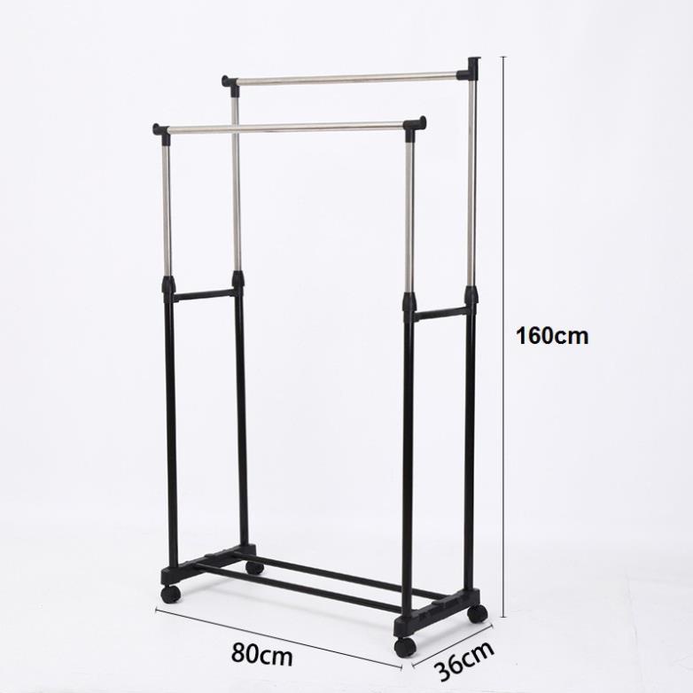 Cây treo quần áo inox, Giàn phơi quần áo kép bằng inox, Giá treo quần áo inox 2 tầng (Hàng tốt)