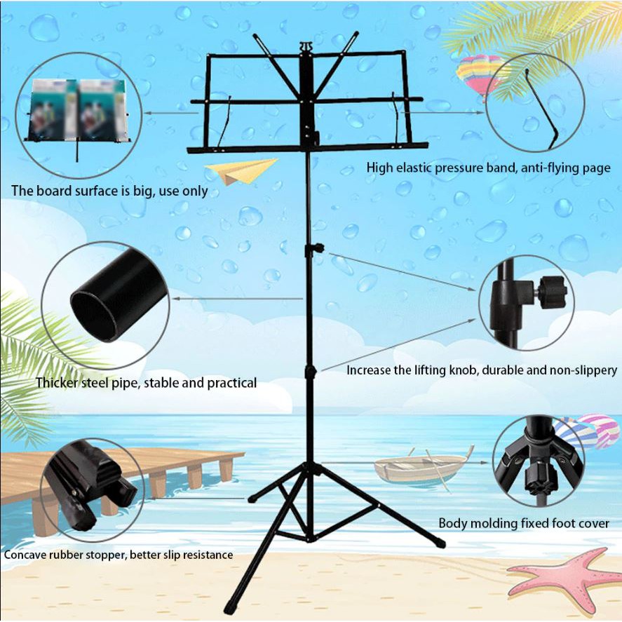 Giá để bài nhạc là phụ kiện không thể thiếu trong các lớp học nhạc, các chương trình nhạc sống, coffee hát với nhau, các sân khấu nhỏ, các chương trình biểu diễn âm nhạc. Giúp các ca sĩ, nhạc sĩ, học sinh theo dõi lời nhạc và nốt nhạc khi trình diễn và học nhạc để tránh sai sót. Giá để bài hát được thiết kế gọn nhẹ, có thể gấp lại cho vào túi dựng, dễ dàng vận chuyển.