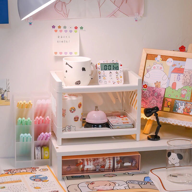 Giá Nhựa Mini Hai Tầng Decor pilu để đồ hai tầng shelf loại mới chắc chắn mẫu mới 2021