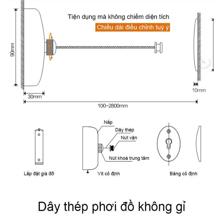 - Ghi chú: Dây phơi dạng cuộn 2.8m