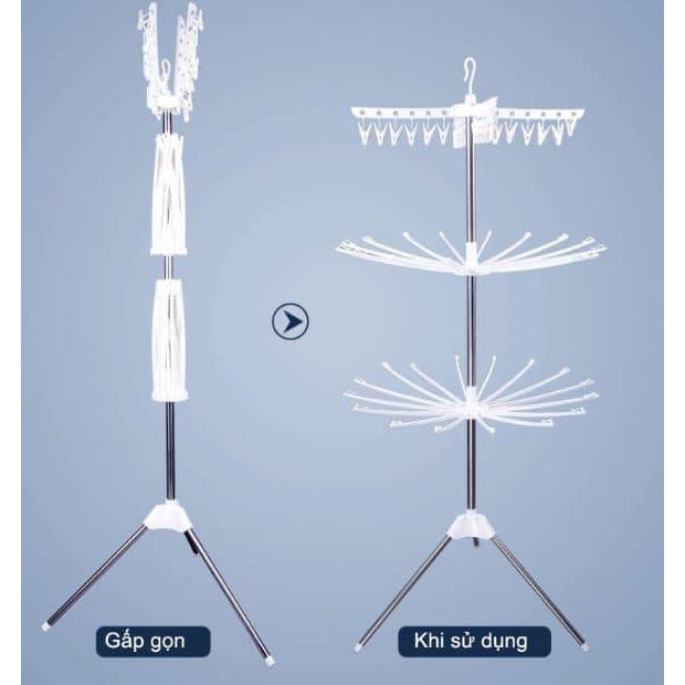 ➡ Cây phơi quần áo 3 tầng với 3 giá phơi đồ cực kì chắc chắn và tiện dụng, có thể gập gọn khi không sử dụng, móc trùm có thể tháo rời làm 1 móc treo khác. Sản phẩm có kích thước gọn nhẹ, giúp bạn dễ dàng di chuyển khi cần thi