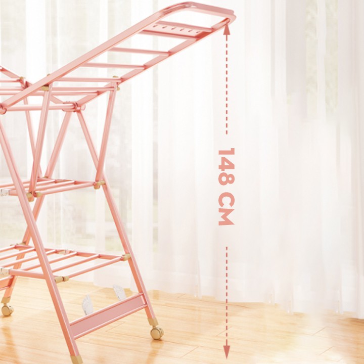 Giá phơi quần áo di động , Giá Treo Đồ Đa Năng Gấp Gọn Hợp Kim Nhôm Chống Gỉ+ Chiều cao: 93 tới 116 cm