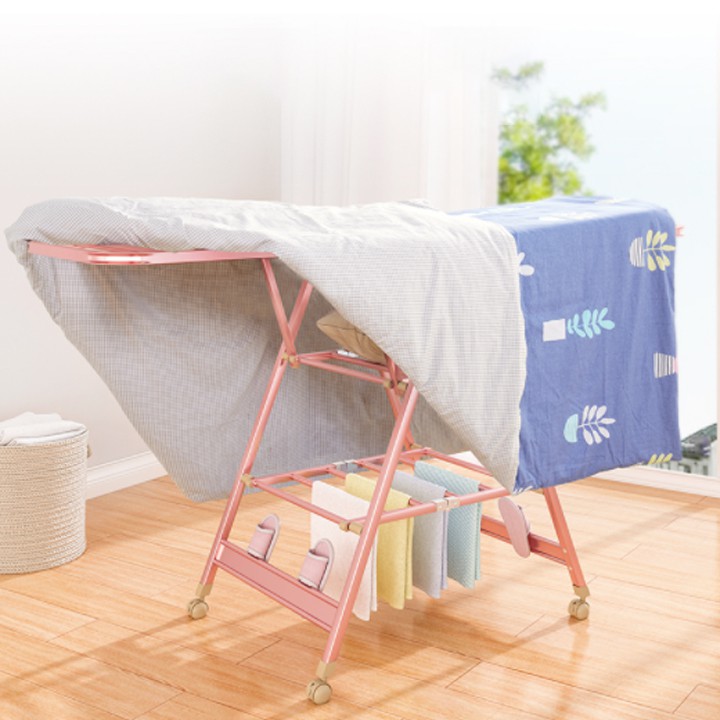 Giá treo quần áo có thể mở rộng về 2 bên giúp bạn thoải mái phơi phóng chăn mà, ga mà không sợ vấy bẩn