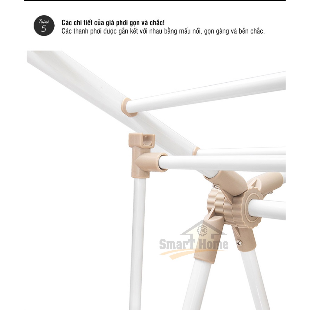 💥 Với kích thước vừa phải, giá phơi thích hợp sử dụng trong hộ gia đình kiểu nhỏ. Bạn có thể phơi khô quần áo ở cả 2 tầng, tính ứng dụng cao.