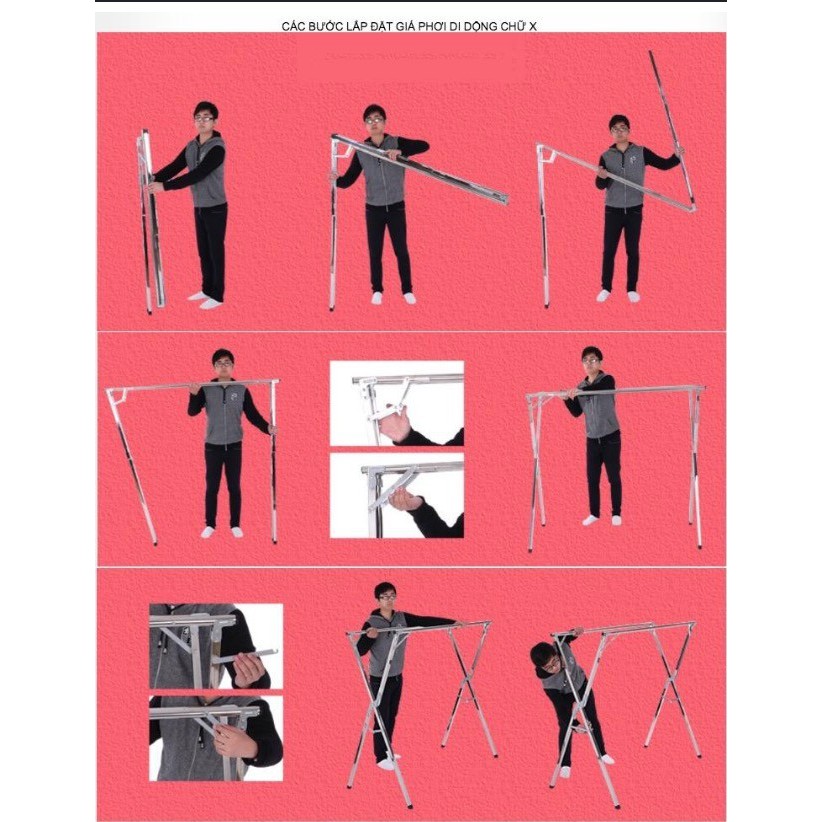 Giá phơi đồ di động Inox đa năng chữ X là loại giàn phơi đa năng có thiết kế mới lạ nhất hiện nay trên thị trường với nhiều tính đa dụng và thẩm mỹ, được làm từ INOX 304, thanh phơi có thể điều chỉnh độ dài, sức phơi lên tới 40Kg.