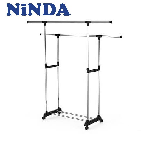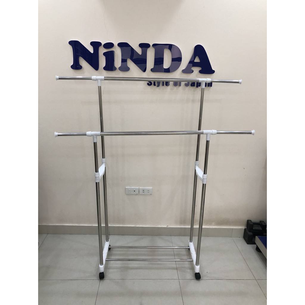 Giá phơi quần áo Inox NiNDA R217 2 tầng có bánh xe