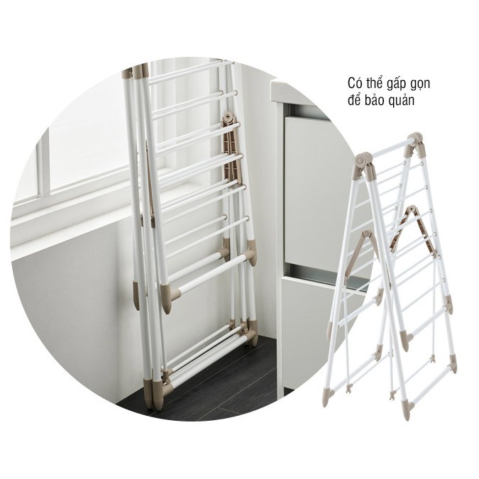 - Với kích thước vừa phải, giá phơi thích hợp sử dụng trong gia đình, có thể phơi được cả 2 tầng