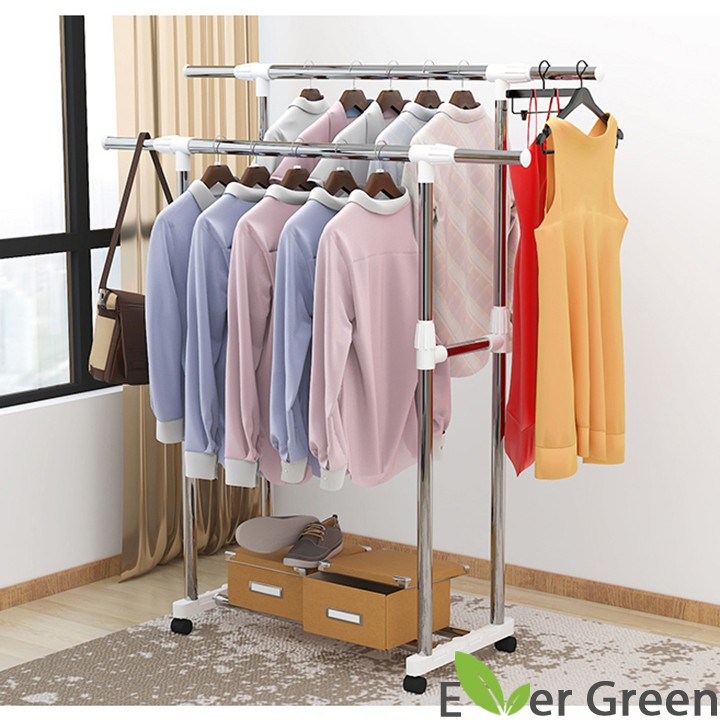 Nhà cửa & Đời sống > Dụng cụ chăm sóc nhà cửa > Dây phơi & giá phơi quần áo || Giá Phơi Quần Áo Ninda Inox 2 Tầng Có Bánh XeCòn hàng