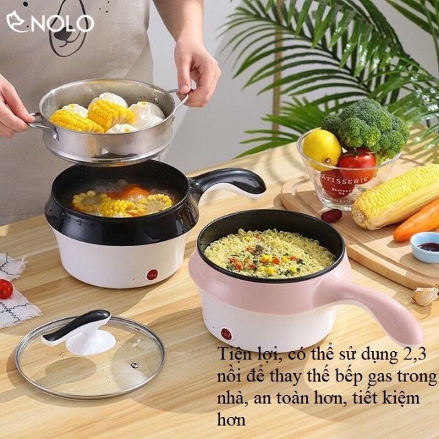 NỒI ĐIỆN CHẢO TAY CẦM MINI ĐA NĂNG:sản phẩm nồi điện mini 2 tầng thích hợp Nấu lẩu, nấu canh, xào rau, nấu mỳ... kiểu dáng gọn nhẹ, dễ dàng đặt trên bàn ăn, không chiếm nhiều diện tích.