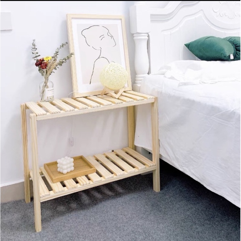 [GIÁ RẺ] KỆ GỖ TRANG TRÍ 2 TẦNG -GỖ THÔNG TỰ NHIÊN ĐA NĂNG