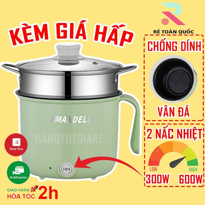 Thiết Bị Điện Gia Dụng > Đồ gia dụng nhà bếp > Nồi nấu đa năng || [GIÁ RẺ NHẤT] Ca mỳ nổi lẩu điện ca náu mỳ hấp 1.8L MANDELI 2 NẤC NHIỆT kèm giá hấp INOX dùng để chiên xào hấp ránCòn hàng